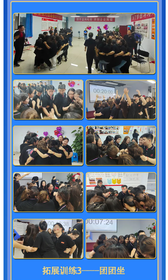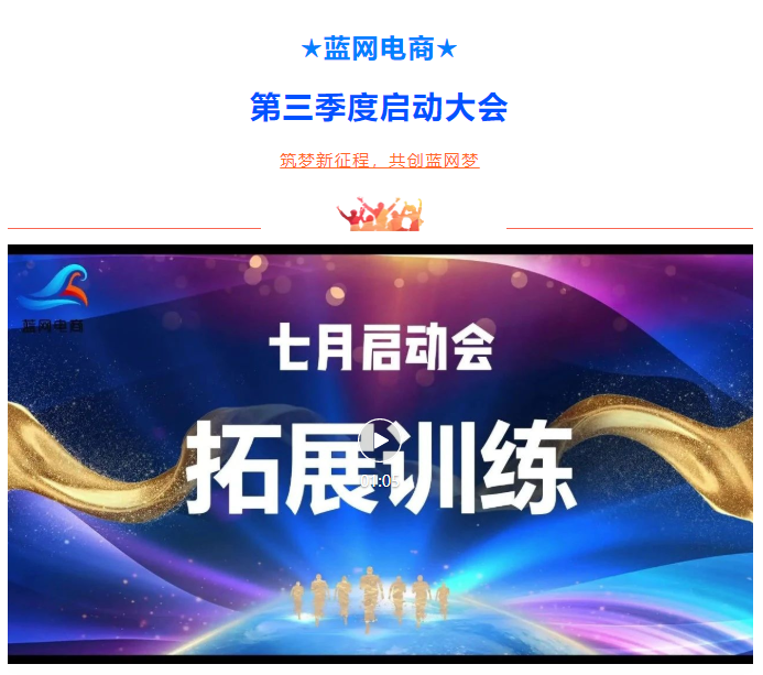 第三季度启动会圆满结束!蓝网的各位家人通过这次拓展训练都收获颇多,活动中,每一个训练都体现了团队配合精神、彼此之间相互信任,才能获得成功。感谢蓝网,这次训练,激发了个人潜能,增强了团队的自信心,每一位家人都克服了心理惰性,磨练出战胜困难的毅力!相信大家以后会更客观的面对工作中的挑战,认识群体的作用,认同公司组织目标,增强团队凝聚力,树立相互配合,互相支持的团队精神和整体意识,把空洞的“团队精神”四个字化为现实。