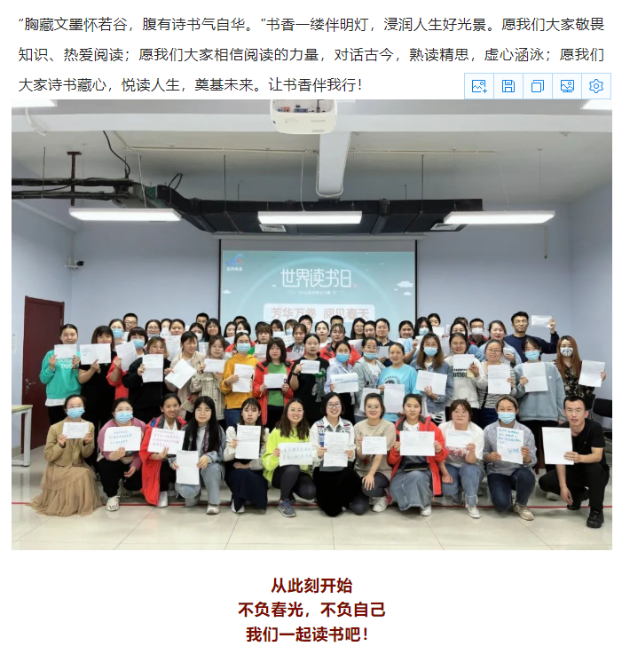 谷雨过后再无寒,人间芳菲已向暖。4月23日是第27个“世界读书日”,这一天提醒我们,无论生活多么忙碌,都要记得读书。在今天这个特别的日子里,蓝网电商举办了“芳华万卷,阅见春天”读书分享活动。