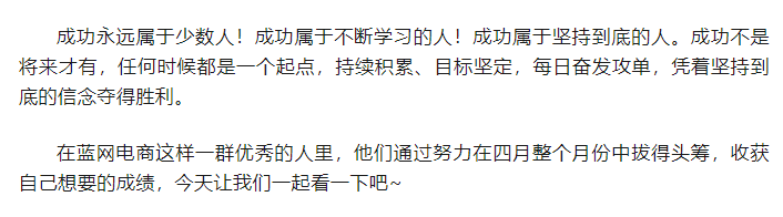 【蓝网电商】四月荣誉榜—砺剑出鞘,登上巅峰!