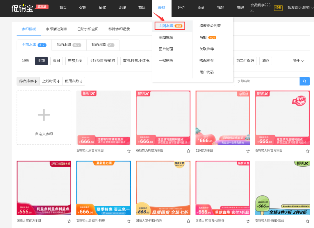 一个产品获取流量的能力大部分来源于主图,对主图进行包装是我们获取流量的最重要途径。在大促活动中,投放配合商品卖点、店铺活动的主图水印,则是我们商家造势、提高点击率和吸引用户进店的重要手段。